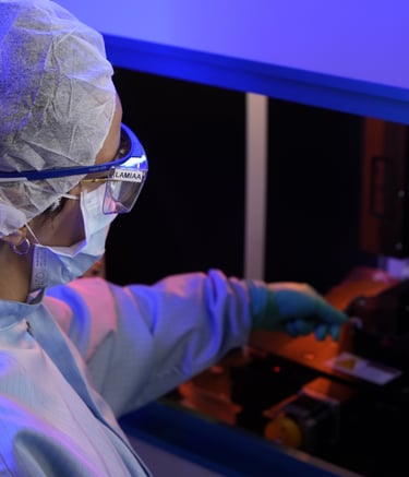 Our work is developed in specialized laboratory environments equipped for materials research, nanoscale device engineering and precision measurement.